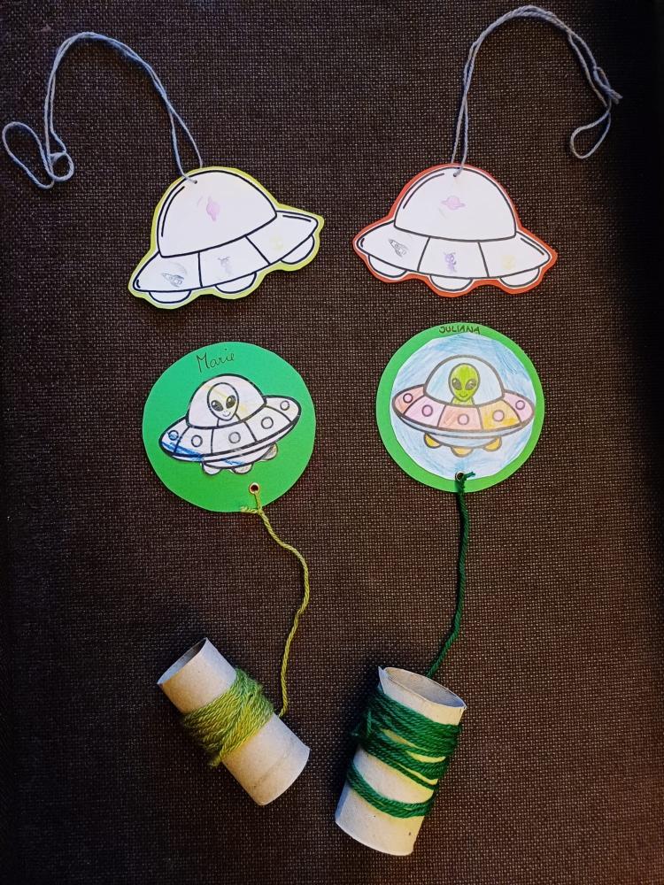 Alle Kinder und das Kindergartenteam waren als Außerirdische verkleidet. An vier Stationen wurden ihnen unterschiedliche Aktivitäten angeboten.