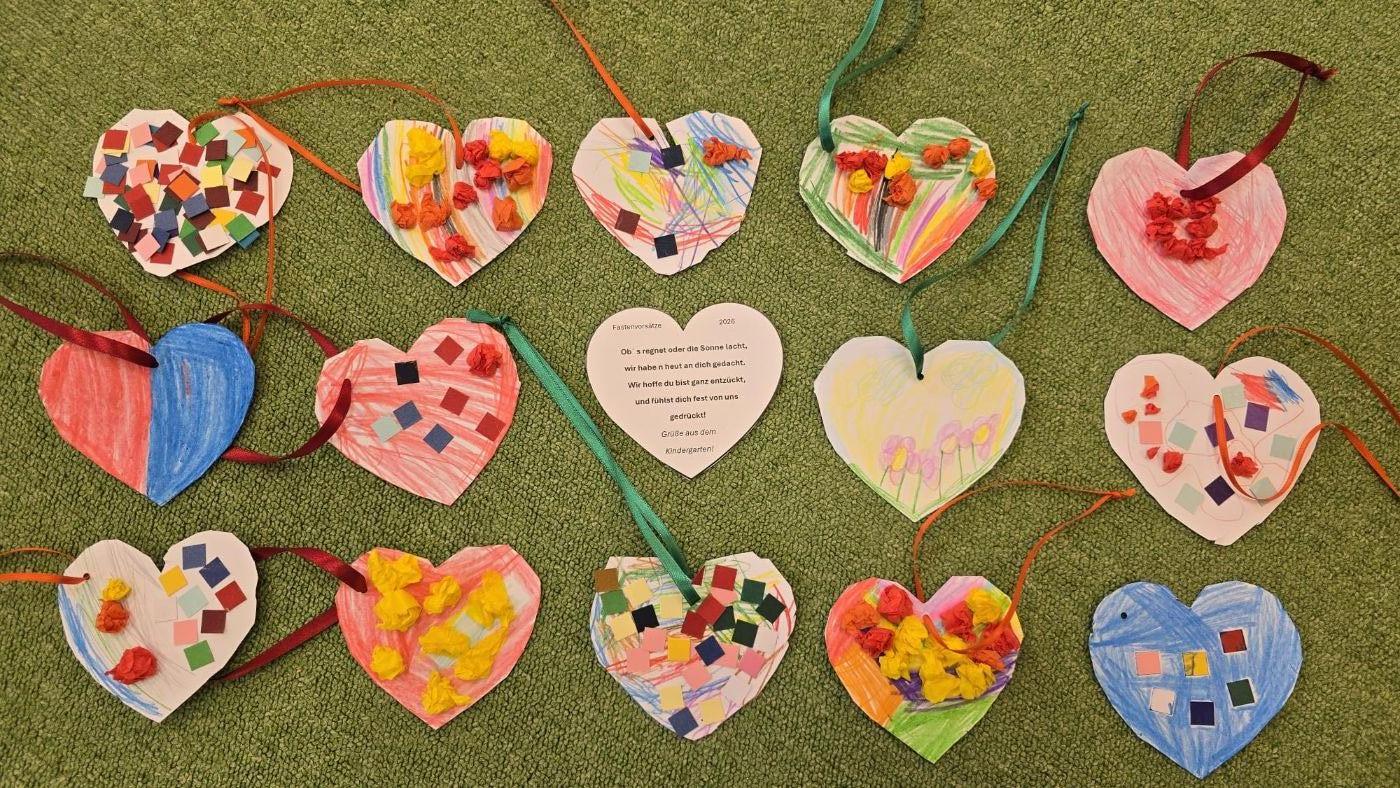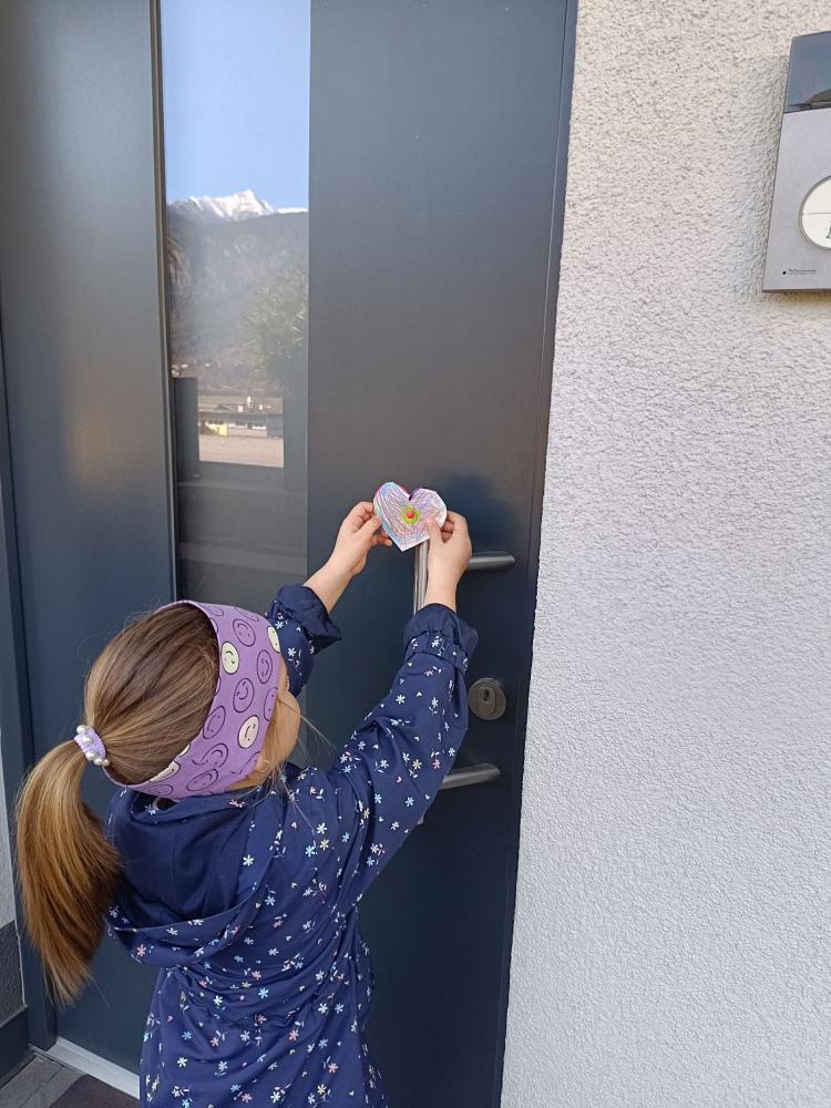 Heute bemalen wir "Gute-Wünsche-Herzen" und verteilen sie bei einem Spaziergang.