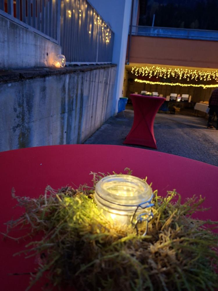 Anschließend klang das Fest in gemütlicher Atmosphäre aus: Bei Kastanien, Mandarinen, selbstgebackenen Keksen, Glühwein und Kinderpunsch konnten alle beisammen stehen. Zahlreiche Lichter und die Musik der Bläsergruppe sorgten für eine festliche Stimmung.