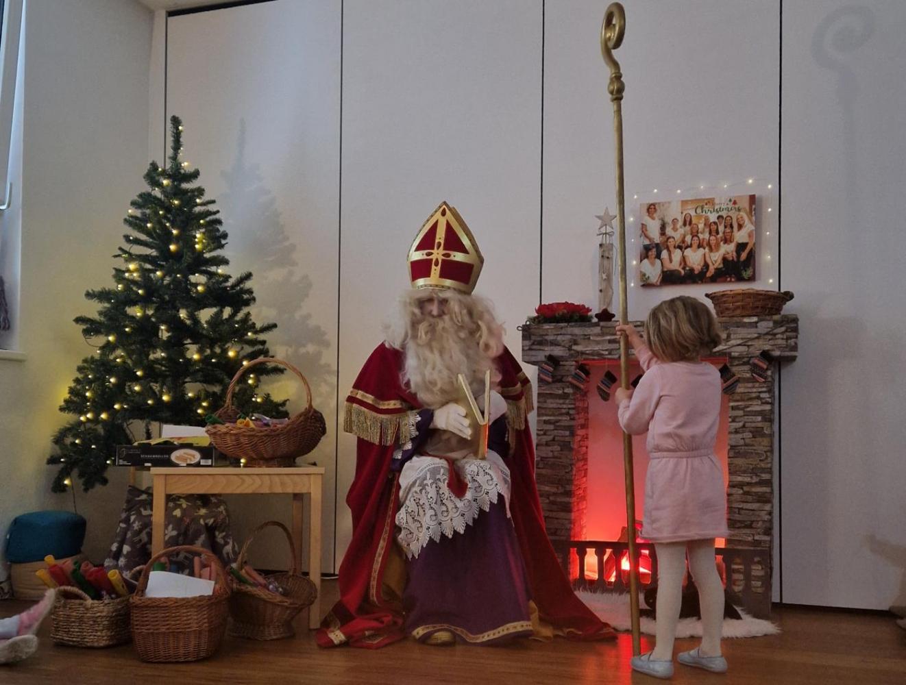 Er begrüßte jedes Kind aus Kindergarten und Kinderkrippe, las aus seinem goldenen Buch vor und lauschte unserem Gesang.